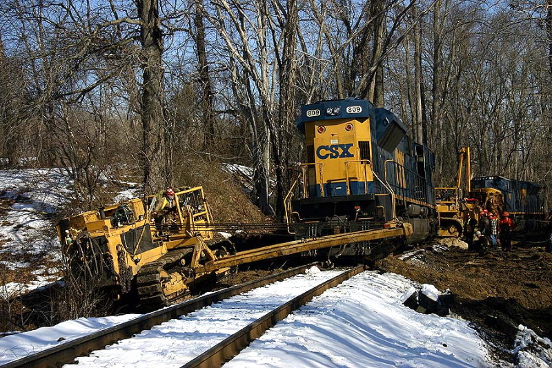 Description: With not much room to work with, the 809 had to be moved to the photo's right side to get back on the rails. Very impressive to watch these guys work. |
