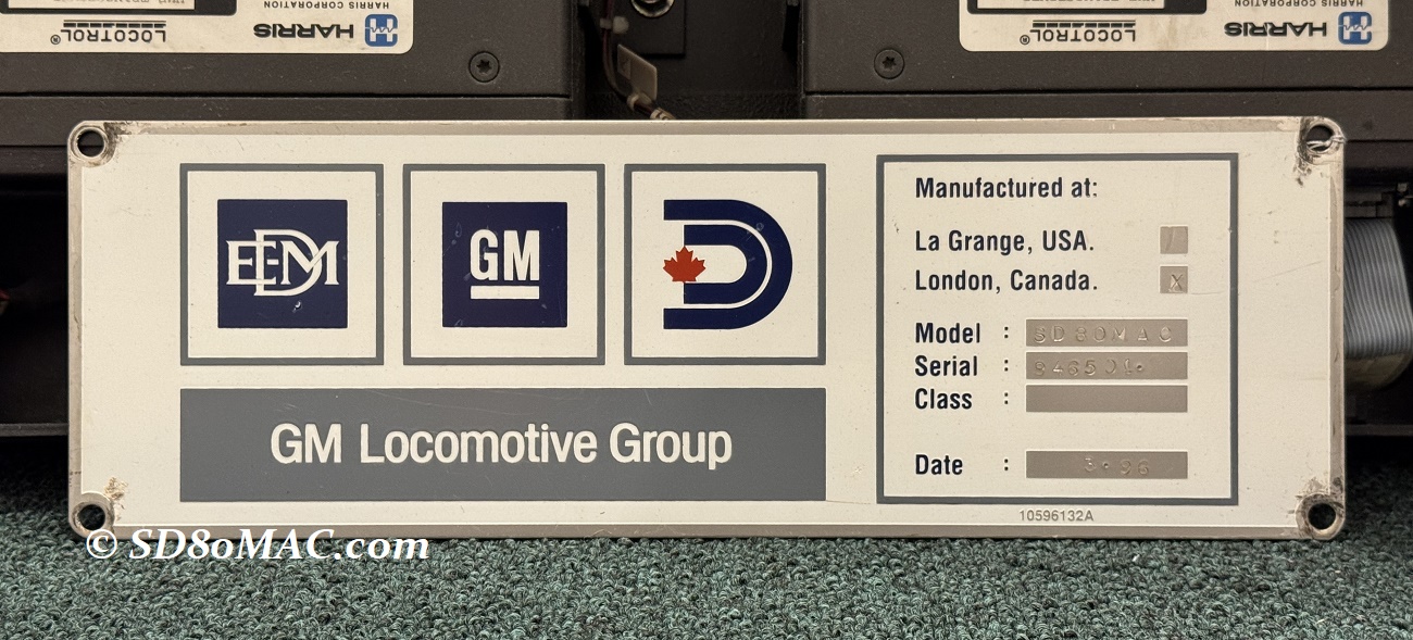 GM/EMD Builder Plate from one of the 30 SD80MACs. |