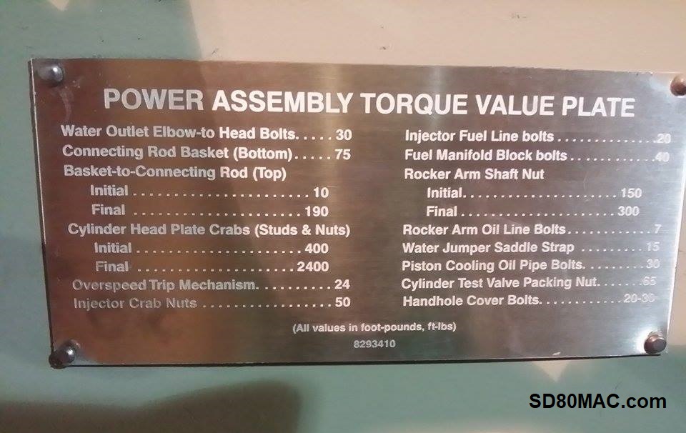 Description: Frame sill emissions plates showing 20 cylinders and 5,000 hp. |