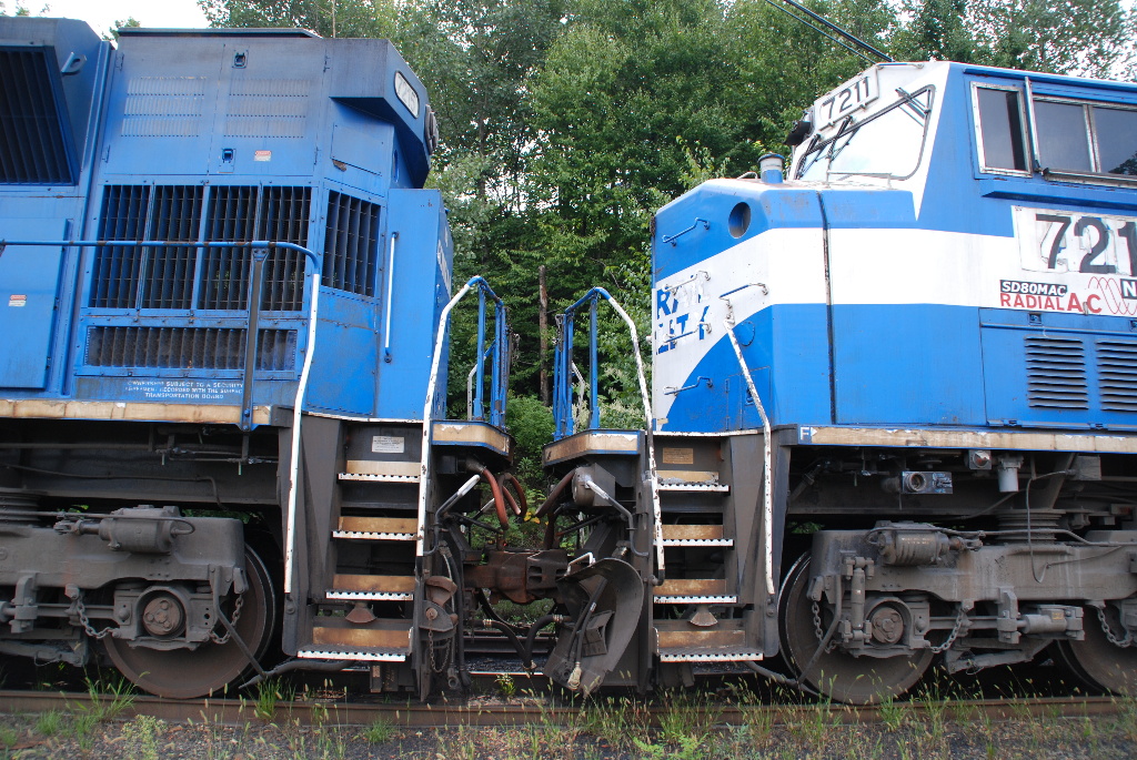 Description: NS 7225 possibly kept its marker lights longer than any other SD80MAC. Here's the unit in Enola sporting the red lamps which were removed sometime before July of 2015. |