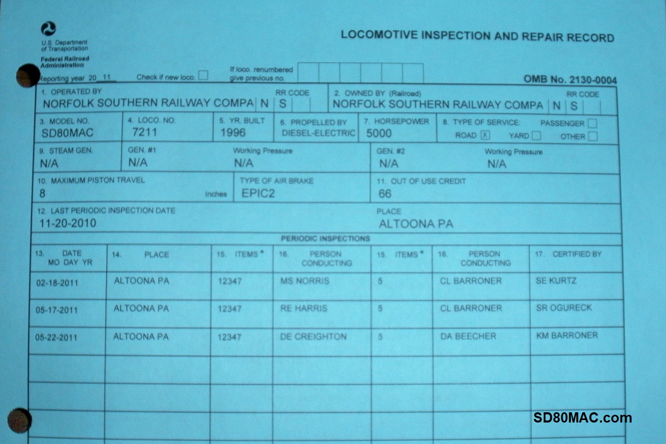 Description: There were rumors that the NS 80MACs were leased but they definitely were not in 2011. This blue card from 7211 shows NS ownership. |