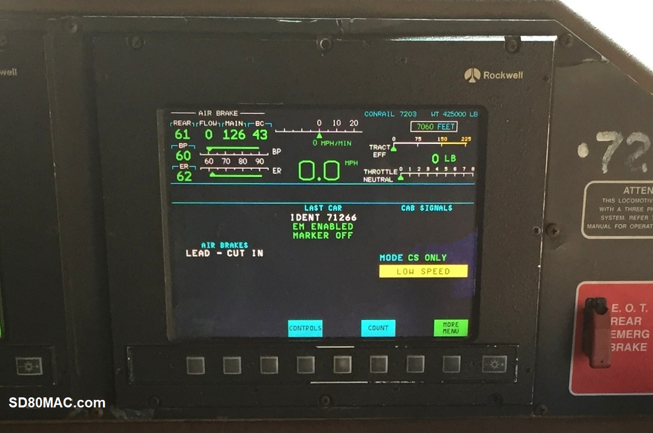 Description: The SD80MACs had desktop control and EPIC air brake, which was all the rage back then, but generally hated by engineers, especially the EPIC. Even like EMD/Progress units of the current day, you can't use both screens at the same time for operation like in a GE. The left screen would have diagnostic/mechanical options. |